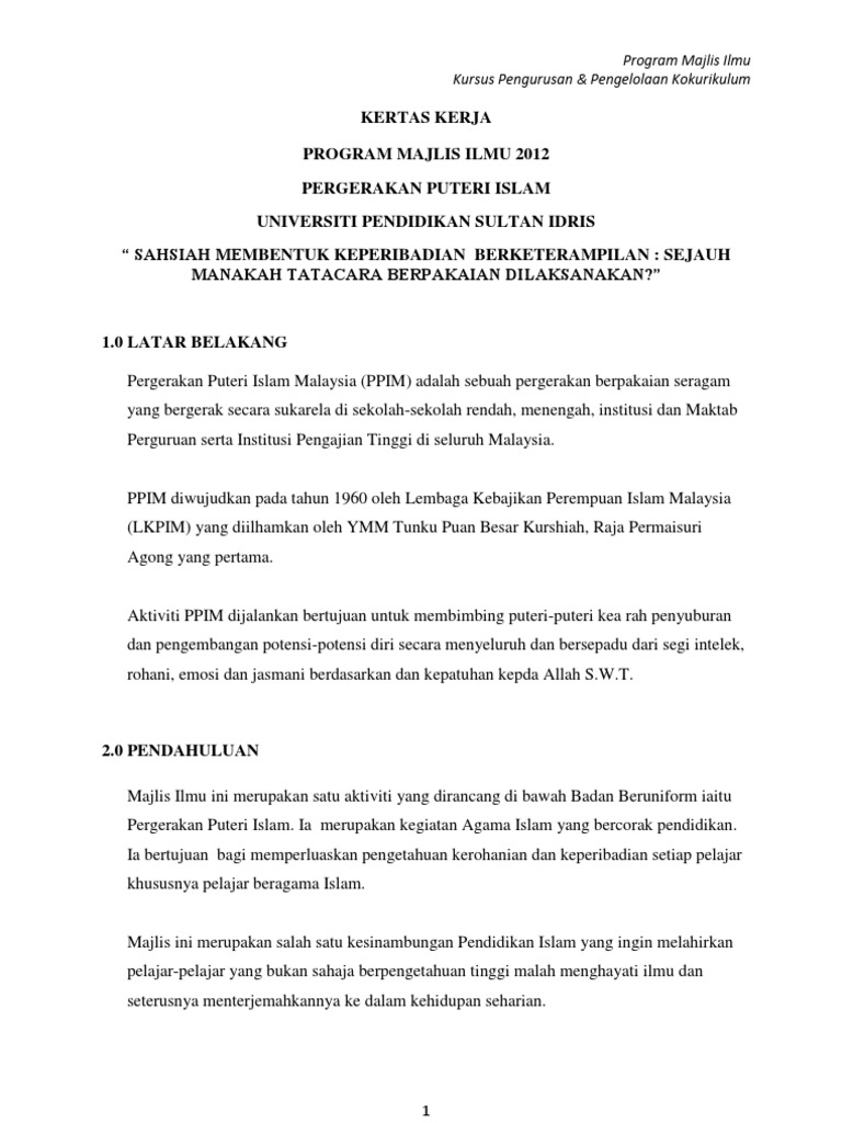 Kertas kerja program sulam uitm kokurikulum hbu132 studocu. Dewan tuanku permaisuri hajah haminah universiti islam antarabangsa sultan abdul halim muadzam shah unishams anjuran. Itu kertas kerja ini dirancang bertujuan untuk memenuhi kehendak kursus yang memerlukan.